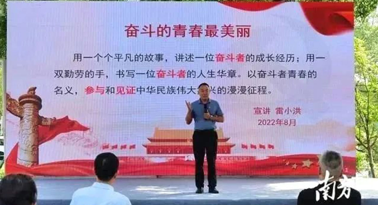 從2020年開始擔(dān)任市級各類宣講團(tuán)成員以來,雷小洪的足跡遍布全市8個縣(市、區(qū)),他的主題宣講及其個人的勵志故事被人民號、中國報(bào)道、珠江電視臺、羊城晚報(bào)、清遠(yuǎn)電視臺、清遠(yuǎn)日報(bào)等各級媒體相繼報(bào)道。
